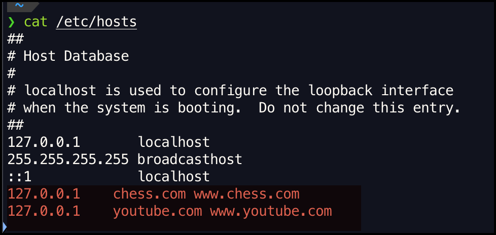 Having realized that yesterday being a fresh start to the week I wanted to address this somehow. In the past, I had built a pretty bad habit of opening up chess.com and playing a quick 5-minute or even 1-minute game whenever I am under some sort of stress. So chess used to be a stress buster for me, but then it has also gotten to a point where I played more chess than I did work. What I did was add chess.com to the /etc/hosts file on my Mac, making it difficult for me to start a new game of chess. I did this almost a year ago. And the end result was that I have never played chess ever again after that. It's been almost a year since my last game.