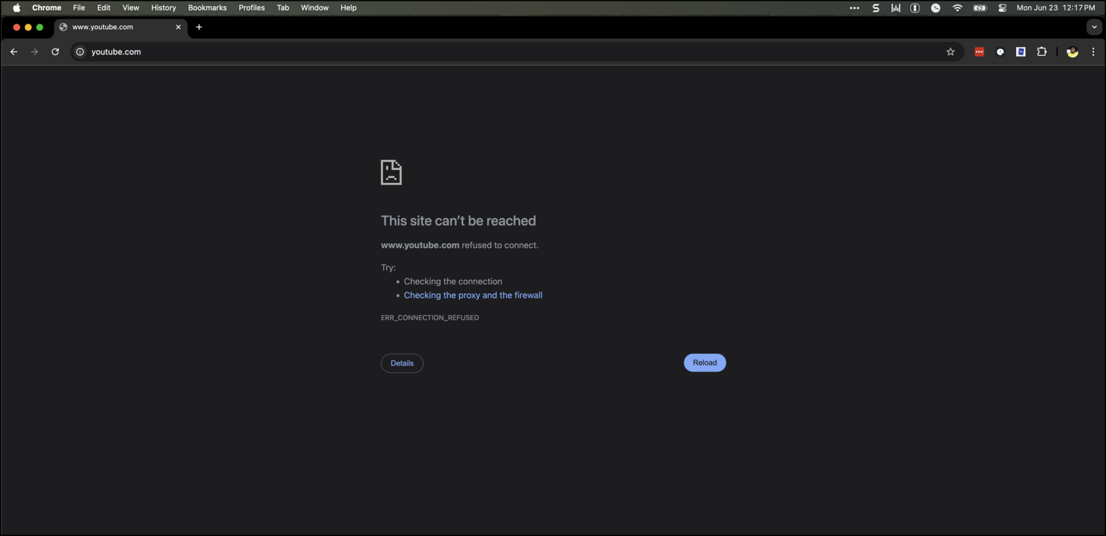 And when I try to visit YouTube in my browser, this is what I see: